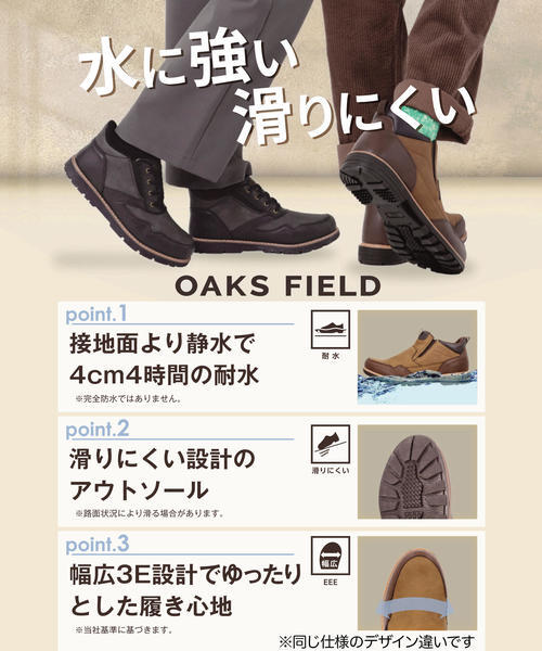 OAKS FIELD オークスフィールド メンズ 耐水カジュアルブーツ【耐水/幅広3E/滑りにくい】レースアップシューズ ゴムひも 526303 ブラック本体価格:5,900円