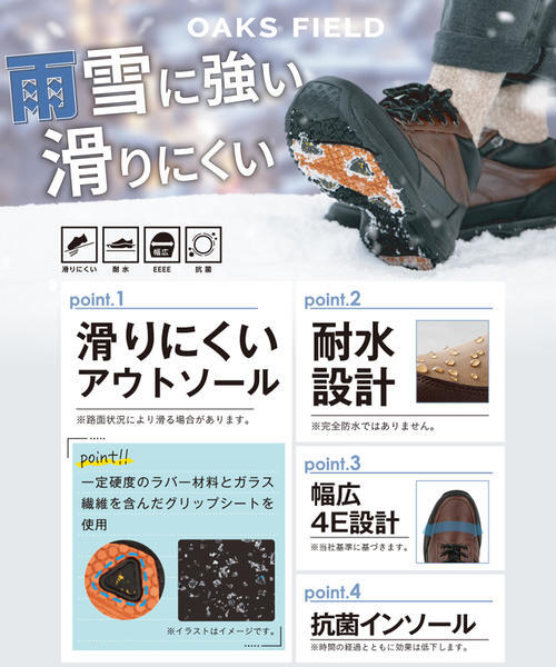 OAKS FIELD オークスフィールド メンズ 耐水コンフォートシューズ【幅広4E/滑りにくい/ガラス繊維配合ソール】ウィンターシューズ 326800 レッドブラウン本体価格:7,900円
