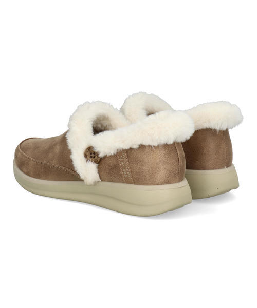 立ったまま手を使わなくてもラクに履けるスリップインズの暖かなファー付きスリッポン。