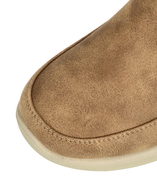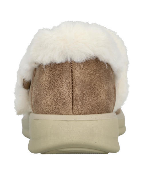 履き口にフェイクファー、内側全面に起毛素材を採用し、つま先まで暖かく包みます。