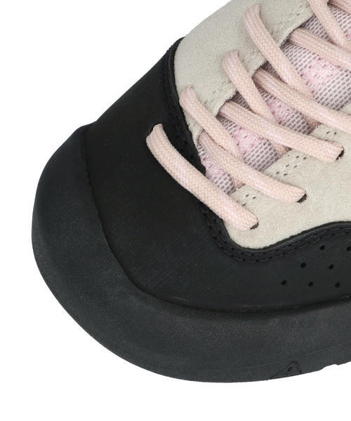 アッパーに上質なスエードと軽量で通気性に優れたリサイクルメッシュを採用し、さらにラバー補強で摩耗を防ぎます。