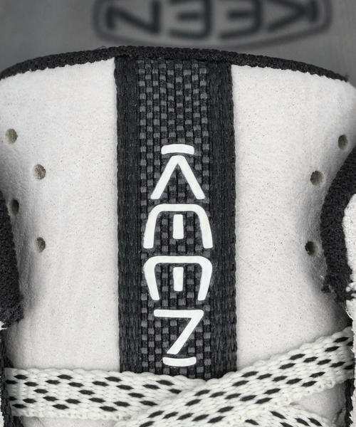 KEENトレイルランニングシューズのアーカイブを現代的に再構築し、シューレース調節がしやすくマッドガードを搭載したプレミアムなシティトレイルランナー。