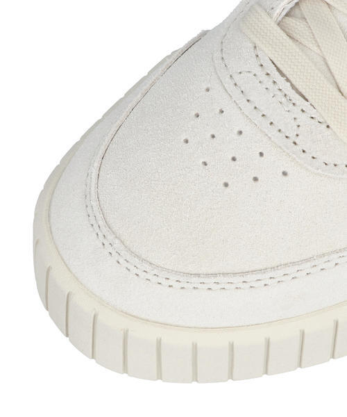 季節に映えるスエードアッパーを採用し、ニュアンスカラーでフェミニンな印象に仕上げたアイテムです。