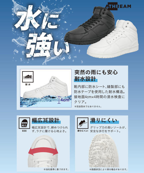 ATHREAM アスリーム レディース スニーカー【耐水/幅広3E/滑りにくい】ハイカット 775102 ホワイト本体価格:3,900円