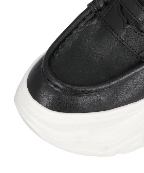 2000年代のランニングシューズをモチーフにした大きく動きのあるボリュームソールに、ローファーパターンを掛け合わせた一足。