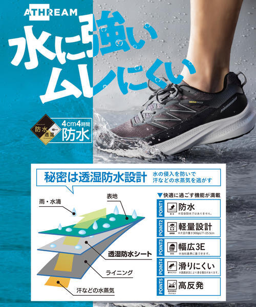 ATHREAM アスリーム メンズ 透湿防水ランニングシューズ【透湿防水/幅広3E/軽量/高反発クッション/滑りにくい】スニーカー 675200 オーク/コンビ本体価格:5,900円