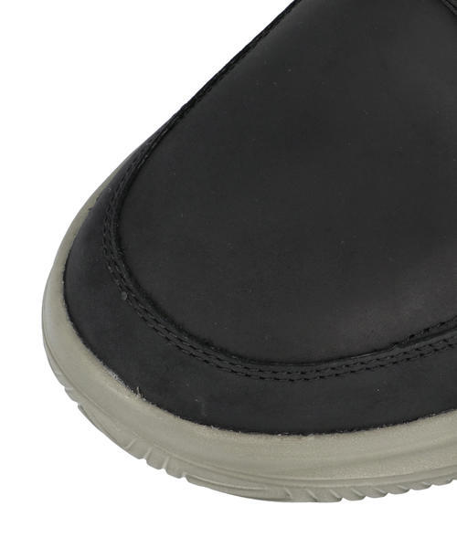 本革と人工皮革をコンビ使いした革靴ライクなリッチなデザインで、普段履きをはじめ、通勤などのビジネスカジュアルやトラベル等、一年を通してオン/オフ問わず活躍します。