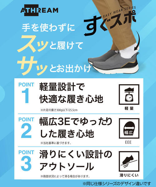 ATHREAM アスリーム 【ハンズフリー】メンズ ウォーキングシューズ【軽量/幅広3E/すぐスポ】サッと履ける スニーカー ゴムひも 775201 [HF] ダークグレー本体価格:5,900円