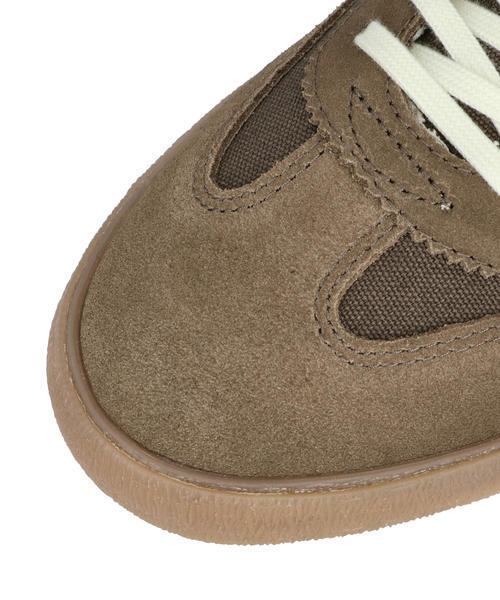 キャンバス素材のアッパーに、トウと踵にスエードを採用することで耐久性を向上。