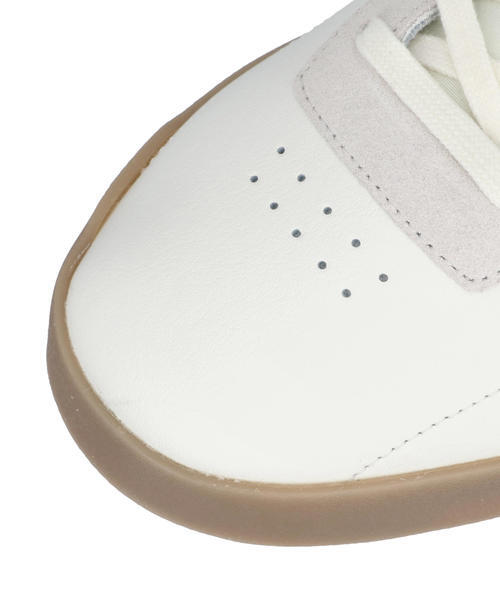 レトロテニスを気取るクラシック&スマートなコートシューズをトリコロールカラーで彩り、フランスブランドならではのエスプリを効かせたアイテム。