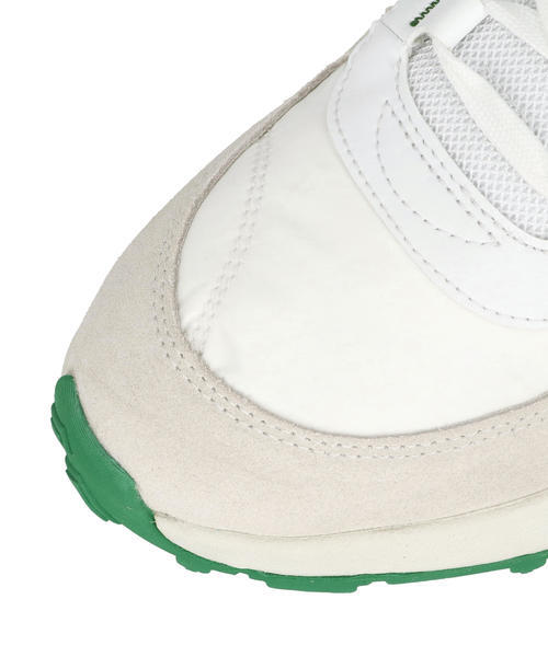 テキスタイルアッパーに同系色のスエードパーツをレイヤードしたコンビネーションデザイン。