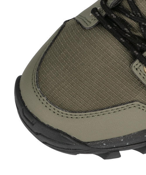 アッパーに超撥水加工を施した合成レザーとリップストップテキスタイルを採用した、防水構造のローカットスニーカーブーツ。