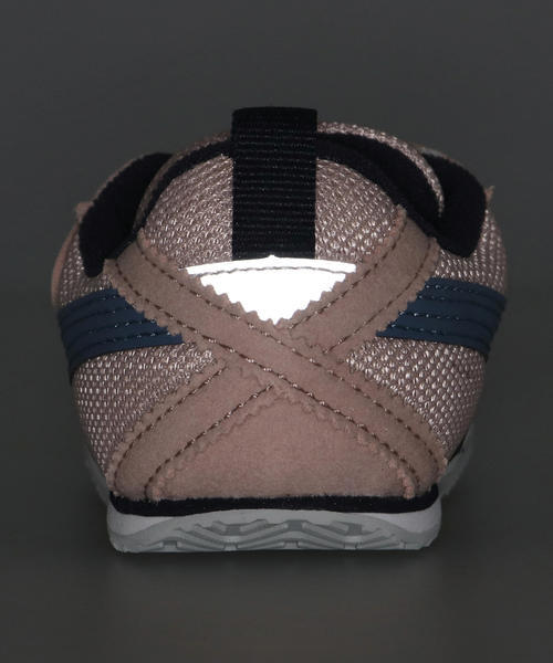 かかとに再帰反射材を採用し、夜間に車のライトに反射して光り、安全性にも配慮